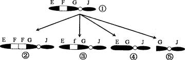 圖①為某染色體的結(jié)構(gòu)示意圖,由①變異而成的染色體②~⑤中,屬于染色體增加某一片段而引起變異的是![]()