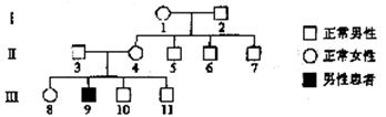 | C.II—6是攜帶者的概率為1/2 | D.Ⅲ—8是正常純合子的概率為1/2 |
