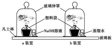 下圖為探究CO2是否為植物光合作用原料的實(shí)驗(yàn)裝置示意圖。其中a為實(shí)驗(yàn)裝置,b為對(duì)照裝置。有關(guān)用塑料袋扎緊花盆的實(shí)驗(yàn)設(shè)計(jì)思路是 ( )![]()