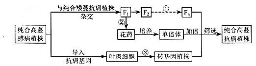 | A.過程①的自交代數(shù)越多,純合高蔓抗病植株的比例超高 |