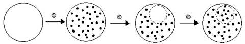 對某動物細胞進行熒光標記實驗,如下圖所示,其基本過程:①用某種熒光染料標記該動物細胞,細胞表面出現(xiàn)熒光斑點。②用激光束照射該細胞表面的某一區(qū)域,該區(qū)域熒光淬滅(消失)。③停止激光束照射一段時間后,該區(qū)域的熒光逐漸恢復,即又出現(xiàn)了斑點。![]()