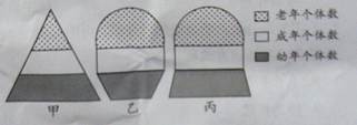 下圖為甲、乙、丙三個(gè)國家的人口年齡結(jié)構(gòu)示意圖。按進(jìn)入老齡化社會(huì)的速度由快到慢順序,正確的是( )![]()