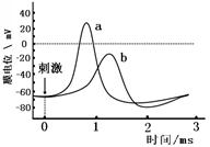 下圖表示槍烏賊離體神經(jīng)纖維在Na+濃度不同的兩種海水中受刺激后的膜電位變化情況。下列描述錯(cuò)誤的是( )![]()