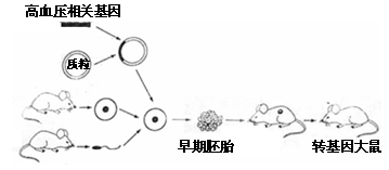 人類疾病的轉(zhuǎn)基因動(dòng)物模型常用于致病機(jī)理的探討及治療藥物的篩選。利用正常大鼠制備遺傳性高血壓轉(zhuǎn)基因模型大鼠的流程如圖所示。![]()