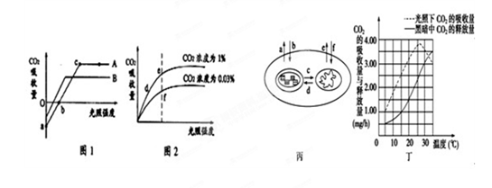 ⑷丁圖表示在密閉裝置中測(cè)得的CO2變化量,在15℃時(shí)該植物光合作用制造的有機(jī)物量是呼吸作用消耗的有機(jī)物量的 倍。