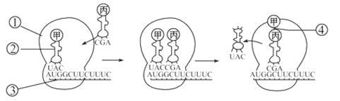 (6分)觀察下列蛋白質(zhì)合成示意圖(圖中甲表示甲硫氨酸,丙表示丙氨酸),回答問題:![]()