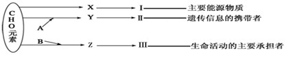 下圖表示細(xì)胞內(nèi)某些有機(jī)物的元素組成和功能關(guān)系,其中A、B代表元素,Ⅰ、Ⅱ、Ⅲ是生物大分子, X、Y、Z分別為構(gòu)成生物大分子的基本單位,請(qǐng)回答下列問題:![]()