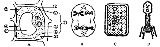 (1)上述各圖結構中共有的有機物(大分子)是 。A、B、C共有的細胞器是 。