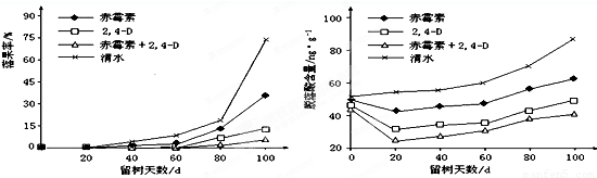 留樹保鮮是通過延遲采收保持果實品質的一項技術。噴施赤霉素和2,4-D對留樹保鮮柑橘的落果率和果實內脫落酸含量的影響如圖所示。下列有關分析不正確的是( )