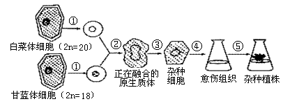 下圖表示利用植物體細(xì)胞雜交技術(shù)獲得雜種植物白菜—甘藍(lán)的過(guò)程,以下說(shuō)法錯(cuò)誤的是