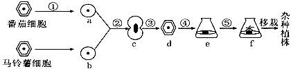 在20世紀(jì)初,科學(xué)家用植物體細(xì)胞雜交的方法,將番茄的原生質(zhì)體和馬鈴薯的原生質(zhì)體融合,成功地培育出了“番茄-馬鈴薯”雜種植株。如下圖,其中①-⑤表示過程,英文字母表示細(xì)胞、組織或植株。據(jù)圖回答下列問題: