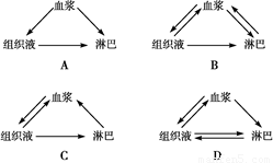 血漿、組織液和淋巴三者間的物質(zhì)聯(lián)系的正確表述是( )![]()