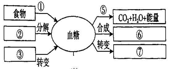 (8分)下圖為血糖的來源和去路示意圖,請(qǐng)回答下列問題: