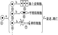 下圖為人體某細胞所經(jīng)歷的生長發(fā)育各個階段示意圖,圖中①~⑦為不同的細胞,a~c表示細胞所進行的生理過程。據(jù)圖分析,下列敘述正確的是