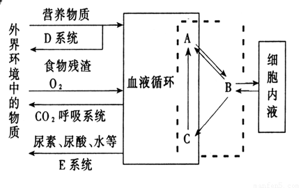 下圖是高等動物體內(nèi)細胞與外界進行物質(zhì)交換圖。