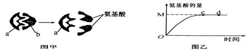 圖甲表示酶催化反應(yīng)過(guò)程的示意圖,圖乙表示在最適溫度下該酶促反應(yīng)生成氨基酸的量與時(shí)間的關(guān)系曲線。下列敘述錯(cuò)誤的是