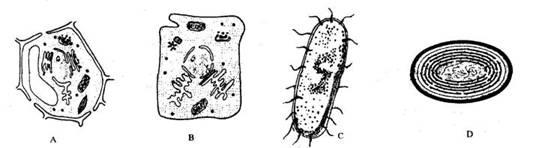 (1)動、植物細胞的最主要區(qū)別是看其有無 。以上4個圖中屬于原核細胞的是 ,能進行光合作用的是 。藍藻是 (填字母 ),其能進行光合作用原因是其具有 、