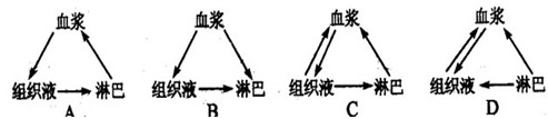 下圖表示內(nèi)環(huán)境成分間的關(guān)系,正確的是 ( )
