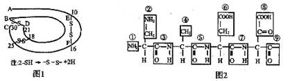 下面是某蛋白質(zhì)的肽鏈結(jié)構(gòu)示意圖(圖1,其中數(shù)字為氨基酸序號(hào))及部分肽鏈放大圖(圖2),據(jù)圖判斷下列敘述中,錯(cuò)誤的是 ( )