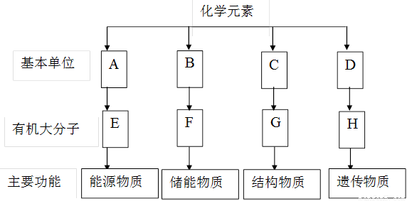 下圖表示細(xì)胞4種有機物的組成,依據(jù)主要功能分析回答:(28分)