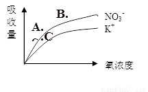 右圖是植物根細(xì)胞在不同的含氧情況下從土壤中吸收兩種離子的曲線,影響A、B兩點(diǎn)和A、C兩點(diǎn)吸收量不同的因素分別是