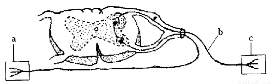 A.c的末端形成的是突觸前膜 B.興奮在該反射弧的傳導(dǎo)方向是由a到c