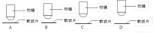 用顯微鏡的一個目鏡分別與4個不同倍數(shù)的物鏡組合來觀察血細(xì)胞涂片。當(dāng)成像清晰時,每一物鏡與載玻片的距離如圖所示。如果載玻片位置不變,用哪一物鏡在一個視野中看到的細(xì)胞最少( )
