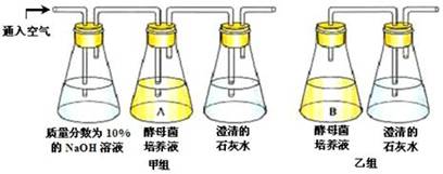 B.甲組探究酵母菌的有氧呼吸,乙組探究酵母菌的無(wú)氧呼吸