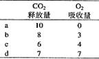 在a、b、c、d條件下,測(cè)得某植物種子萌發(fā)時(shí)CO2和O2體積變化的相對(duì)值如下表。若底物是葡萄糖,下列敘述中不正確的是
