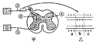 A.在甲圖中,①所示的結(jié)構(gòu)屬于反射弧的感受器
