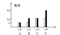 右圖A、B、C、D分別表示某個雄性動物(2n)在精子形成過程中不同階段的細胞,a、b分別表示每個細胞中染色體和DNA的數(shù)量變化。根據(jù)a和b的變化,細胞出現(xiàn)的先后順序是