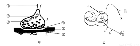 A.甲圖中③內(nèi)的物質(zhì)為神經(jīng)遞質(zhì),它可以和⑥上的特異性受體結(jié)合