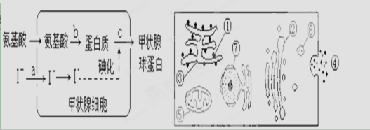 甲狀腺細胞可以將氨基酸和碘合成甲狀腺球蛋白,并且將甲狀腺球蛋白分泌到細胞外,其過程如下圖所示。下列敘述錯誤的是( )