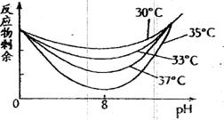 右圖表示某反應物剩余量隨pH及溫度的變化情況,