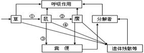 下圖表示某草原生態(tài)系統(tǒng)中能量流動圖解,①~④表示相關(guān)過程能量流動量。下列有關(guān)敘述正確的是
