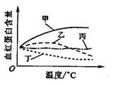 水中氧含量隨水溫的升高而下降。生活在寒溫帶湖泊中的某動物,其血液中的血紅蛋白含量與其生活的水溫有關(guān)。圖中能正確表示一定溫度范圍內(nèi)該動物血液中血紅蛋白含量隨水溫變化趨勢的曲線是