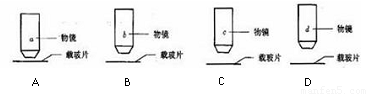 用顯微鏡的一個目鏡分別與4個不同倍數的物鏡組合來觀察血細胞涂片。當成像清晰時,每一物鏡與載玻片的距離如圖所示。如果載玻片位置不變,用哪一種物鏡在一個視野中看到的細胞最多 ( )
