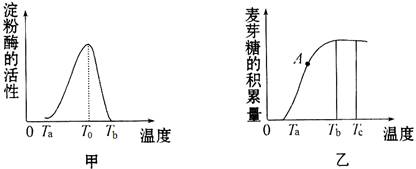 C.圖乙中Tb到Tc的曲線表明隨溫度的升高,麥芽糖的積累量不再上升,表明酶的活性已達(dá)到最大