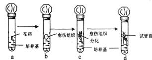 A.a(chǎn)用花藥離體培養(yǎng)法獲得單倍體植株;b通過有絲分裂產(chǎn)生愈傷組織;c培養(yǎng)基中至少應(yīng)有乙烯和脫落酸;d試管苗的生長發(fā)育不需要光照
