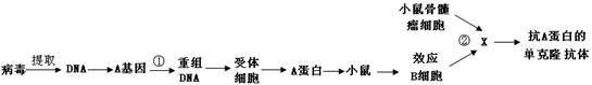 (15分)人類在預(yù)防與診療傳染性疾病過程中,經(jīng)常使用疫苗和抗體。已知某傳染性疾病的病原體為DNA病毒,該病毒表面的A蛋白為主要抗原,且菌苗生產(chǎn)和抗體制備的流程之一如下,據(jù)圖回答: