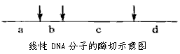 已知某種限制性內(nèi)切酶在一線性DNA分子上有3個(gè)酶切位點(diǎn),如圖中箭頭所指,如果該線性DNA分子在3個(gè)酶切位點(diǎn)上都被該酶切斷,則會(huì)產(chǎn)生a、b、c、d四種不同長度的DNA片段。現(xiàn)在多個(gè)上述線性DNA分子,若在每個(gè)DNA分子上至少有1個(gè)酶切位點(diǎn)被該酶切斷,則從理論上講,經(jīng)該酶切后,這些線性DNA分子最多能產(chǎn)生長度不同的DNA片段種類數(shù)是