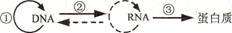 下圖為遺傳學(xué)中的中心法則圖解,圖中①、②、③分別表示的過程是( )
