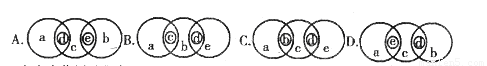 下圖中的圓分別表示:a生產(chǎn)者、b分解者、c原核生物、d藍(lán)藻、e腐生細(xì)菌。能正確表示它們之間相互關(guān)系的是( )