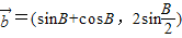 【答案】分析:(1)由兩向量的坐標及兩向量平行,根據(jù)平面向量的數(shù)量積法則列出關(guān)系式,再利用二倍角的余弦函數(shù)公式化簡,整理后得出cosB的值,由B為三角形的內(nèi)角,利用特殊角的三角函數(shù)值即可求出B的度數(shù);