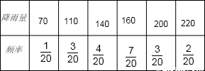 | 某河流上的一座水力發(fā)電站,每年六月份的發(fā)電量Y(單位:萬千瓦時)與該河上游在六月份的降雨量X(單位:毫米)有關(guān)。據(jù)統(tǒng)計,當X=70時,Y=460;X每增加10,Y增加5;已知近20年X的值為:140,110,160,70,200,160,140,160,220,200,110,160,160,200,140,110,160,220,140,160。 (1)完成如下的頻率分布表: | ||||||||||||||
