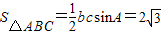 【答案】分析:由b2+c2=a2-bc,結(jié)合余弦定理,我們可以求出cosA的值,進(jìn)一步可以求出sinA值,又由,可以求出bc=8,代入三角形面積公式即可求出答案.