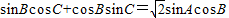 ∵sin(B+C)=sin(π-A)=sinA,∴,