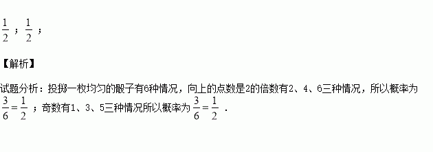 投擲一枚均勻的骰子,則落地時(shí),向上的點(diǎn)數(shù)是2的倍數(shù)的概率是 ;落地時(shí),向上的點(diǎn)數(shù)為奇數(shù)的概率是 .