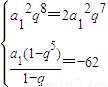 已知等比數(shù)列{an}的前n項和為Sn,若a2a8=2a3a6,S5=-62,則a1的值是