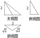 解答:解:由三視圖知該幾何體是直三棱錐,且底面是等腰直角三角形,